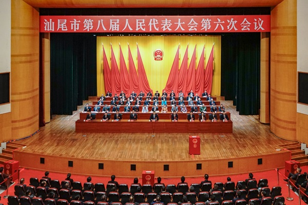 2月26日下午,汕尾市第八屆人民代表大會第六次會議圓滿完成各項議程,在市區馬思聰藝術中心會堂勝利閉幕。