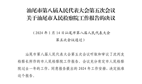 汕尾市第八屆人民代表大會第五次會議關于汕尾市人民檢察院工作報告的決議